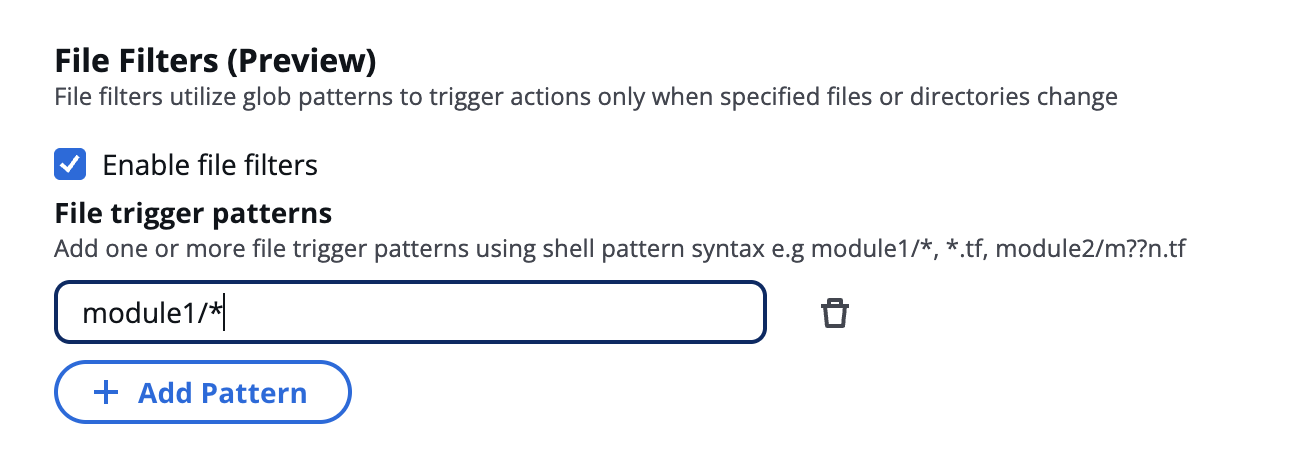 - Add one or more file trigger patterns using shell pattern syntax.