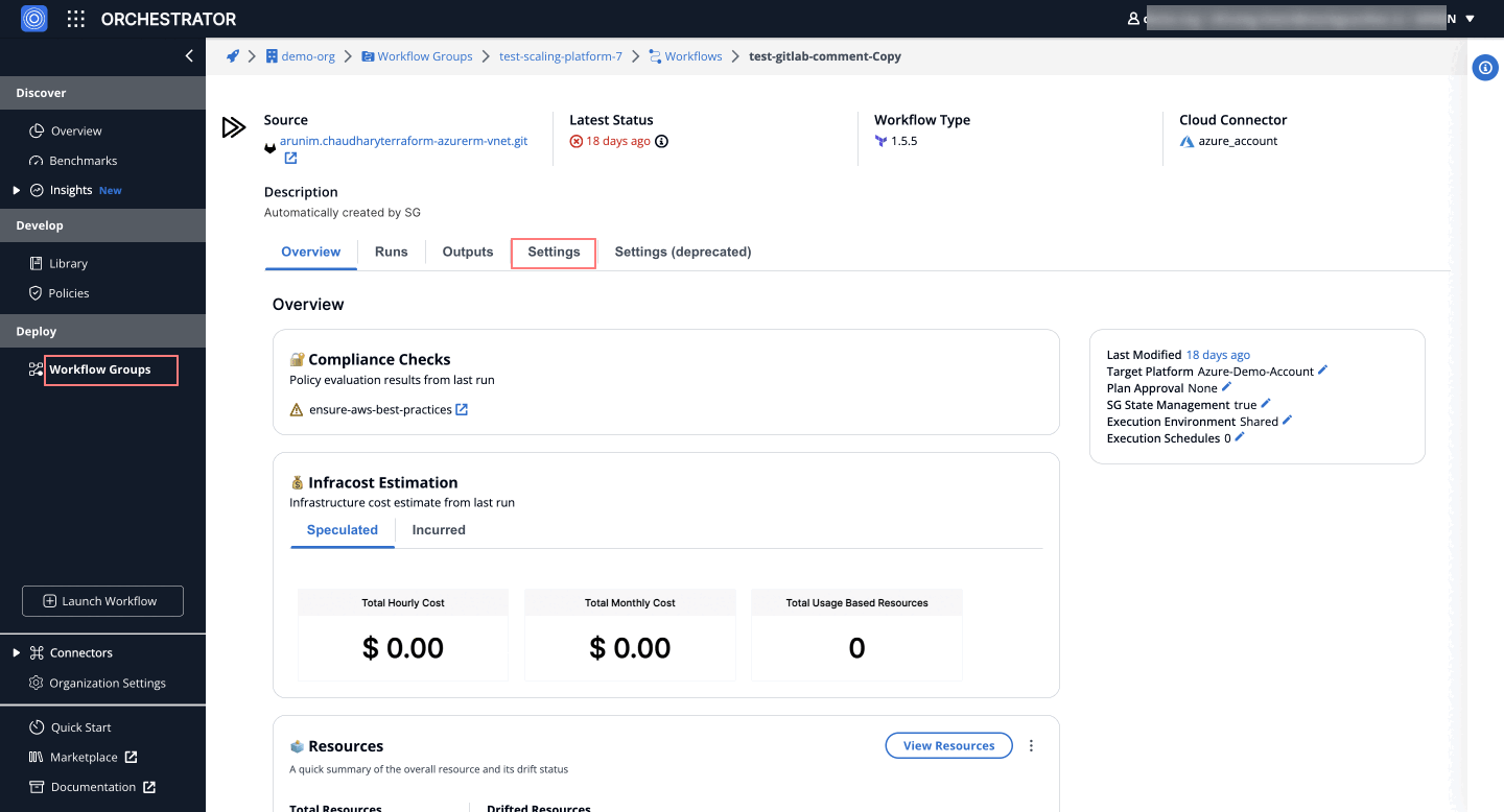 - Within the workflow, navigate to Settings > Source and Parameters > Git Repository.